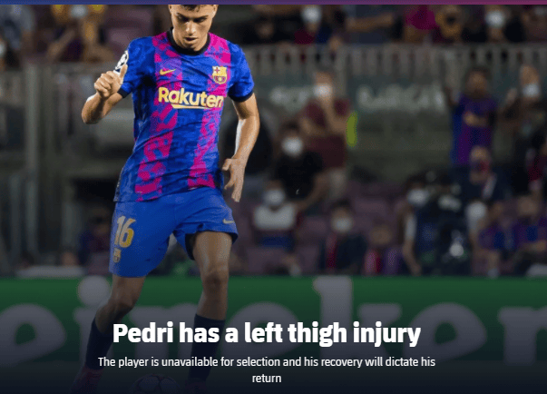 巴萨在西甲积分榜以1分优势领跑,然而短暂的快乐中夹带着悲伤,比如莱万多夫斯基和拉什福德的去留问题是干扰项,但伤病问题似乎才是最大的拦路虎,加维和克里斯滕森相继倒下,最近一个“中招”的是大脑佩德里。在巴萨对阵布拉格斯拉维亚的欧冠比赛中,遭遇右腿股二头肌拉伤,预计伤缺一个月,虽然无碍巴萨的胜利果实,只不过从来日方长的角度看,也许这是一个影响巴萨进度的潜在拐角点。