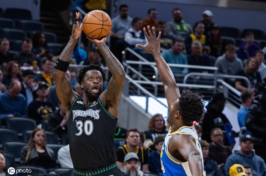 森林狼队首发:阿约-多森姆、朱利叶斯-兰德尔、丹特-迪文琴佐、迈克-康利、鲁迪-戈贝尔